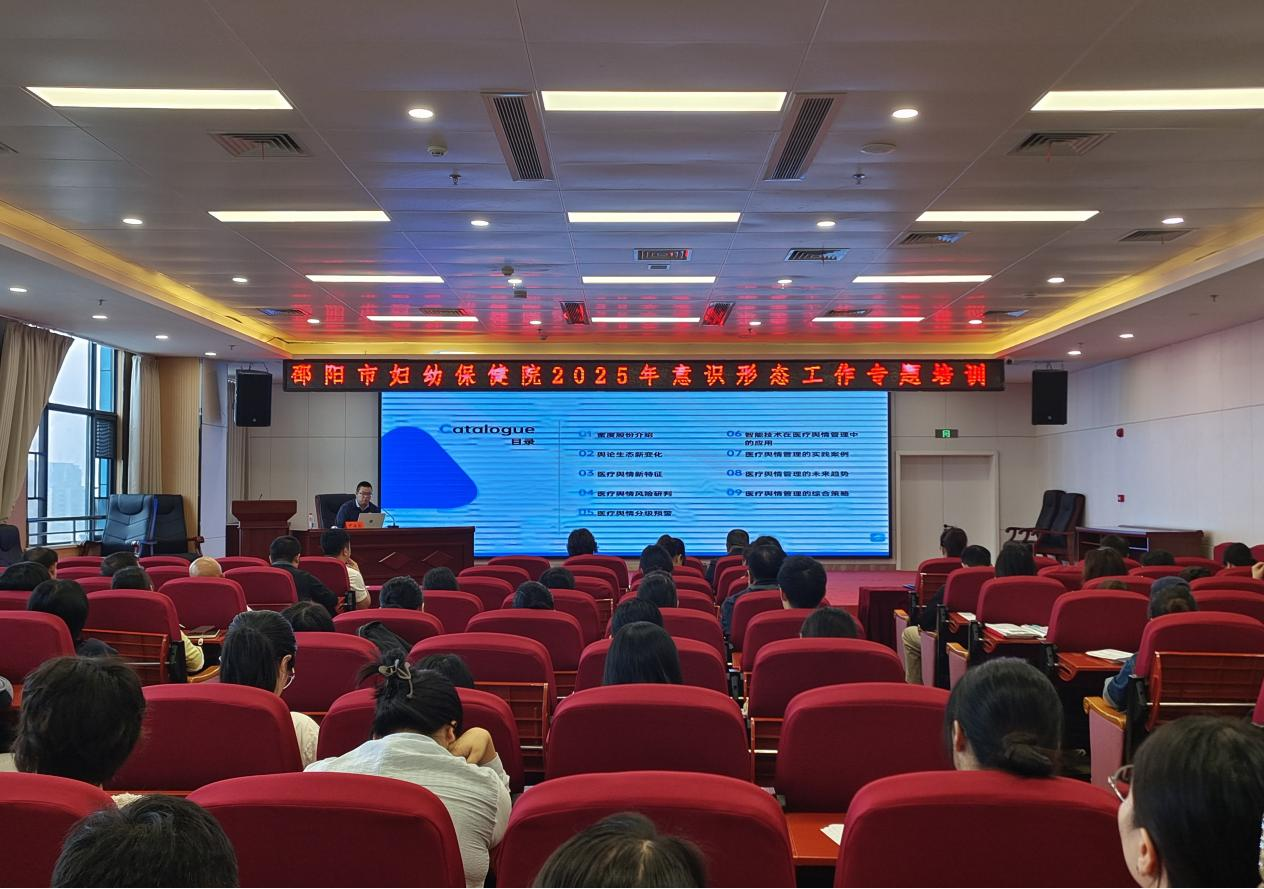 为精准把握智能时代医疗舆情特征,提升舆情研判能力与宣传水平,进一步扩大医院社会影响力,9月26日,邵阳市妇幼保健院召开2025年意识形态工作专题培训。培训特邀专业培训老师尹海源授课,全院职工参与培训。